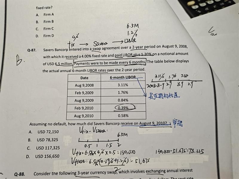 计算2010年8月9日的时候的盈亏,为什么fix不算终值,Vfloat=par吗?我理解的Vfloat=6.5M×(1+1.2%/2),为什么错