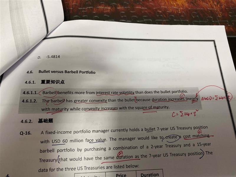 B选项的意思是杠铃不一定比子弹好,但是后面的总结又说杠铃比子弹在利率变化时收益更多,是不是矛盾?