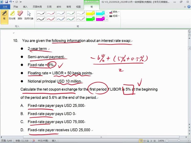 模考第10题,利率互换,(没有说明利率类型的话),默认付固定利率,收浮动利率吗?