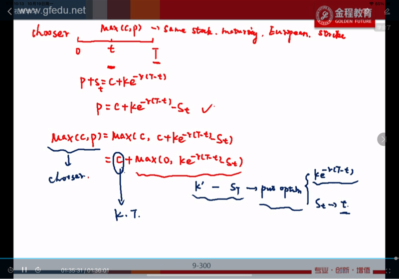 你好,这里最后没有听明白,是指在t时刻分别买入执行价格为k的call和买入执行价格为ke(-r(T-t))的put吗