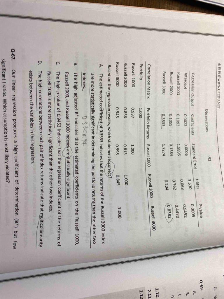 66题为什么老师看到pvalue等于0.8382就直接说他不显著呢?不应该和显著性水平比一下吗