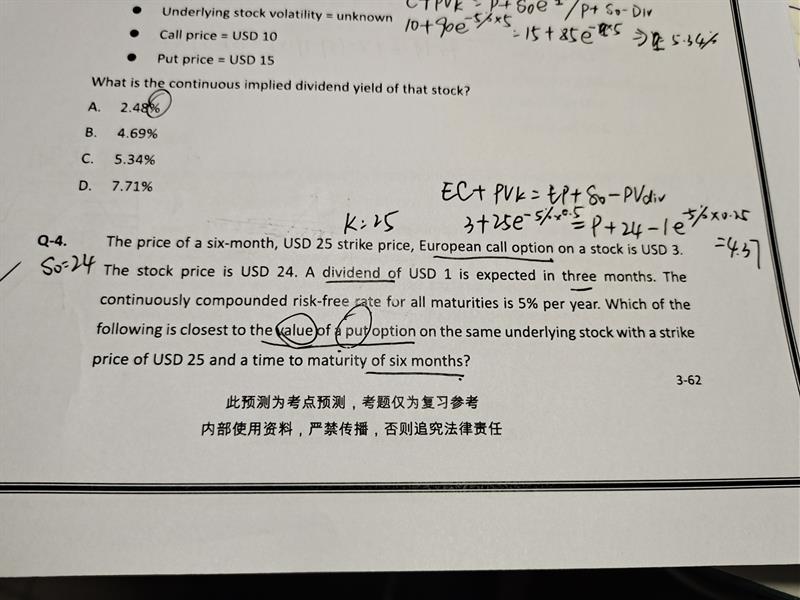 EUROPEAN PUT的lower bound不是PVK-S吗?58题为什么要去除以(1+4.5%)^t
