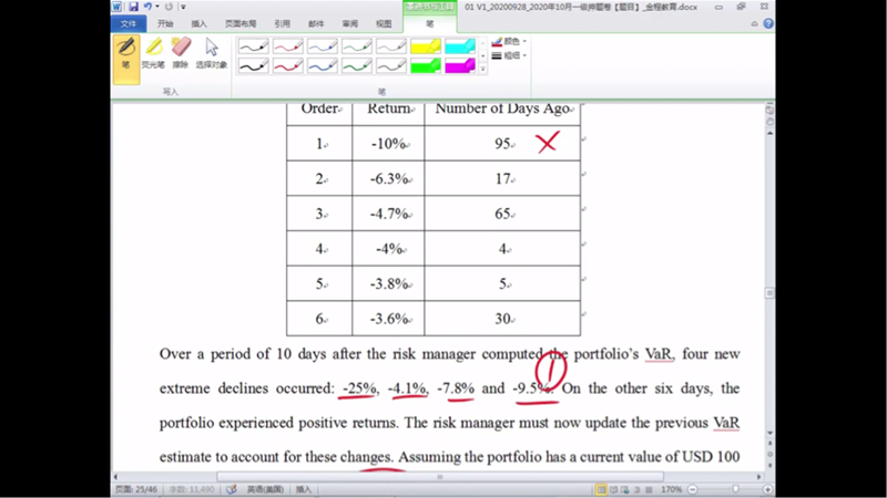 84题为什么代入10%和2%,按照EWMA的公式不应该是代入t-1天的0.06%和0.1%吗?