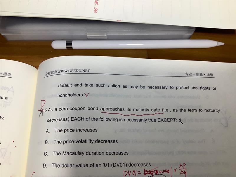 老师,这个415题the bond approaches its maturity date 与下列选项之间的关系是什么呢?不太明白。🙏
