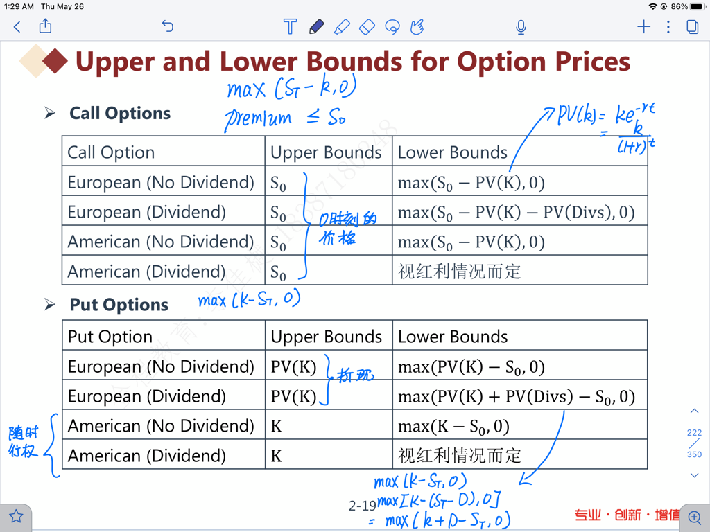 请问在American put option里,为什么upper bonds里的K不需要折现?