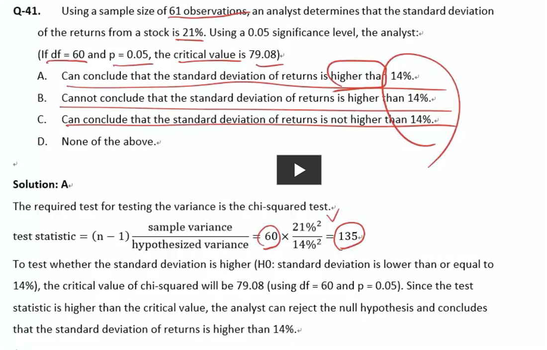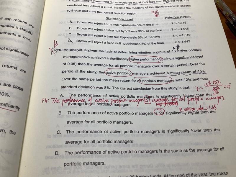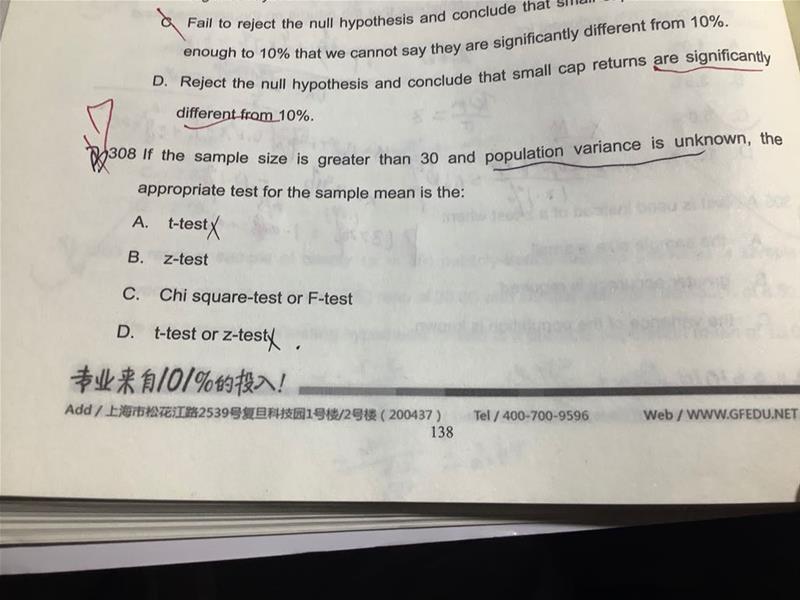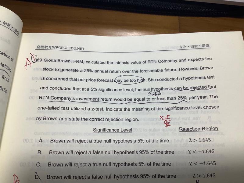 老师,这个309题怎么去理解呢?然后关于这题还有一个问题,reject a true null hypothesis 5% of the time 和 reject a false null hypothesis 95% of the time 是一个意思么?感谢