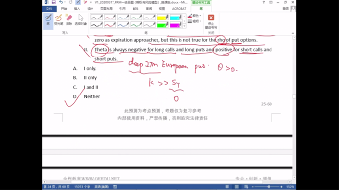 38题 theta 是long >0,short<0且当long deep ITM 的时候<0对吗?