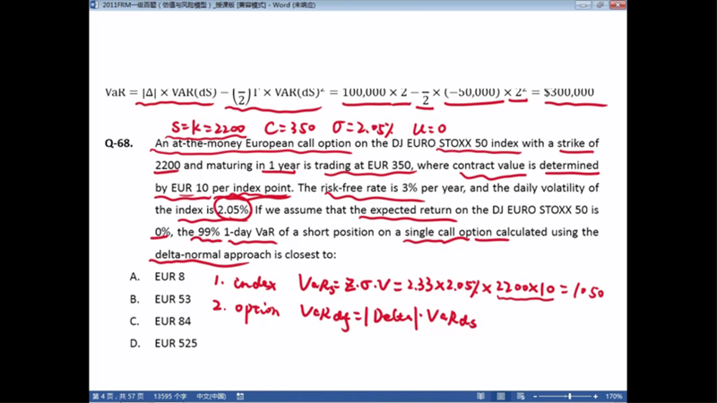 首先没弄懂为什么标的资产价值是2200乘10。2200和10不都是表示价格的数字吗?乘积又是什么意义?其次 在最后计算期权价格带入公式的时候 没写后半部分的1/2 gamma Var方,是因为假定了gamma等于0吗?