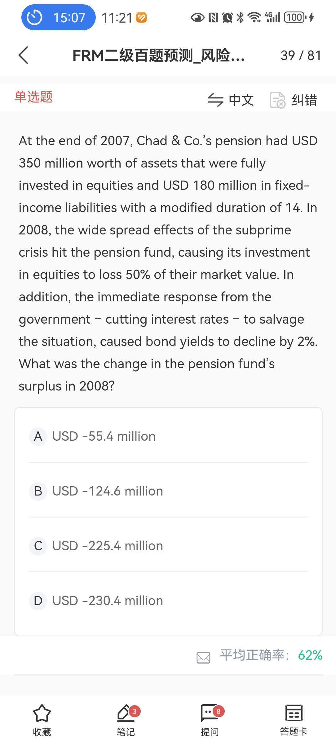 老师,这个题目里面,变化后,权益E是不是就是-55了。如果这样的话,按照上一题有的同学提出的简便算法,在初始状态的权益作为surplus,计算市场变动后,直接用权益*(1-50%)的这个算法实际是不能用的,那个题目是巧合了吧?