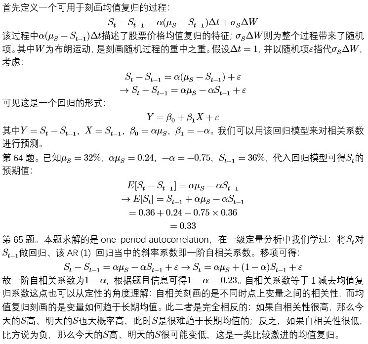 老师您好,百题资料的第64题和第65题,没有看明白。此外,针对64题,为什么那个线性回归的0.75就是均值回归的系数了?65题又是怎么算出来的?