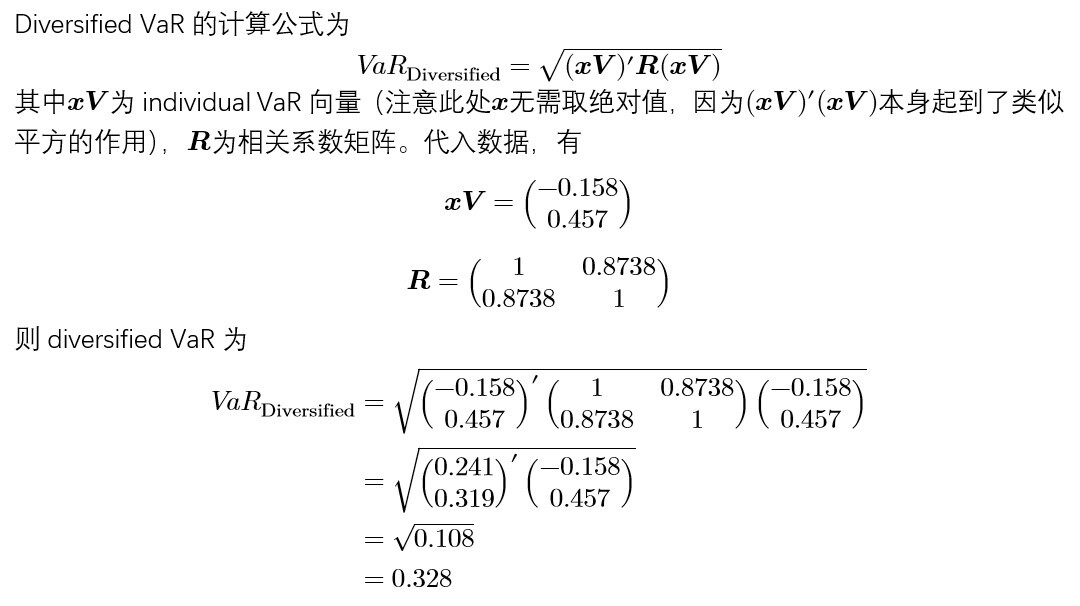 这里的diversified var怎么算出来的?我用每笔现金流的var和相关系数计算出来的var是0.6??