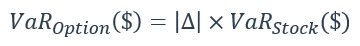 2. delta是期权价值对于标的资产价格的敏感性,在delta-normal方法中,期权的VaR算式见下图。该公式也可被拓展至其他衍生品(如远期合约)。