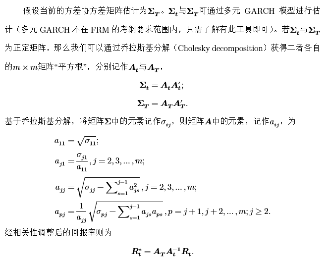 同学你好。相关性加权历史模拟法作为一种半参数法,是要用协方差矩阵的。具体的做法见下图。