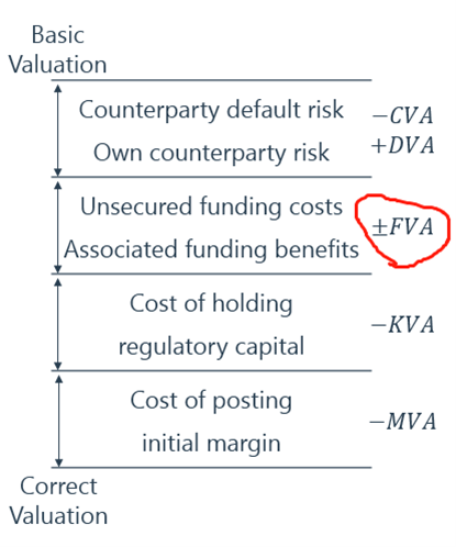 如果交易对手是去中央清算机构交易的话,那么必然要交一笔保证金,这个时候就会面临着去市场上融资的可能,因此FVA又可能会上升