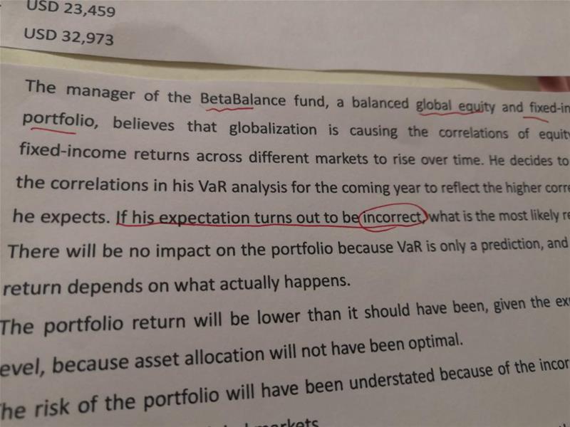 同学你好,可以从题干看出他的策略是错的,这个基金经理认为固定收益资产之间的相关性会升高,于是调整了一些仓位的配置,最后事实证明他的预期是错的,这些都是题干信息,所以这个基金经理肯定没有实现最优配置,