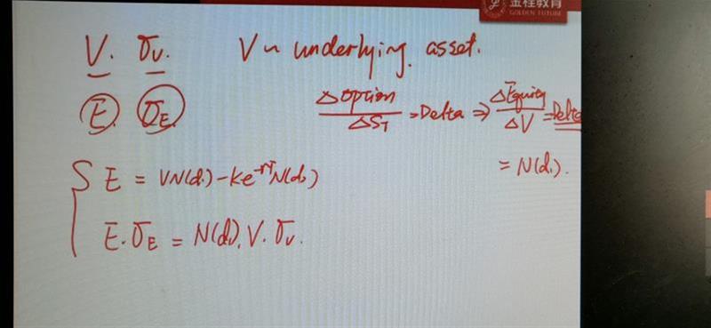 两个问题:1、N(d1)是不是应该等于deltaE/deltaV?因为V与E的关系相当于S与call,而delta等于delta call/delta S。2、最下面的公式是怎么推出来的