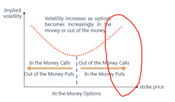 同学你好,这里的价格指的是执行价格,当出现右边的尾巴很肥的时候,根据波动率微笑的图形,我们可以很清楚的看到,此时对应的执行价格也是比较高的,所以这道题应该选择C选项