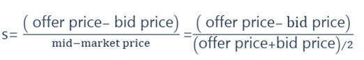 同学你好呀,买卖价差可以通过下面的公式计算出来,这个公式在流动性风险的那个章节,对应的,分子是卖价减去买价,也就是41-39=2,分母是中间价格,也就是(41+39)/2=40,所以spread就是2/40=5%