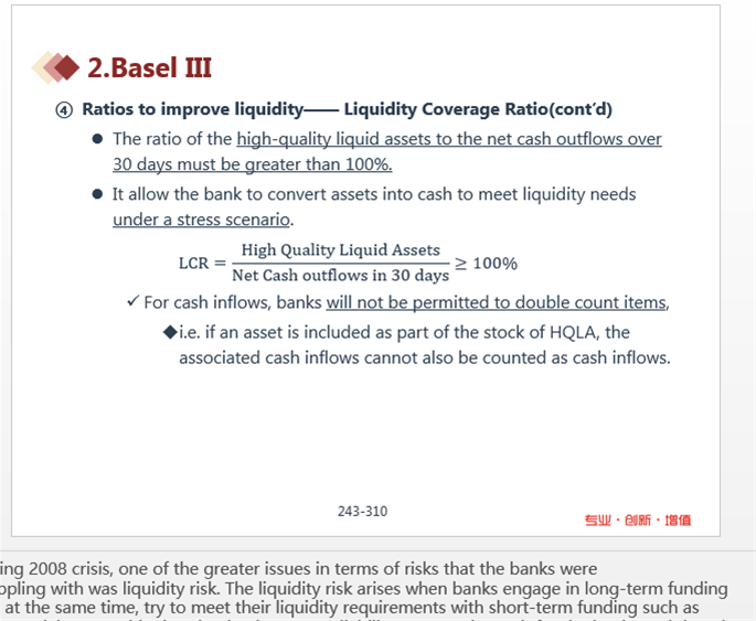 同学你好,分母里用来计算未来30天净现金流的公式在新的考纲里已经不再展开了(流动性风险里也没有展开),所以这个公式已经删除掉了,不用记的。另外,这个题目是老的题目,考试里如果考的话,会直接告诉你未来30天净现金流或者告诉你怎么计算,不用过于担心。