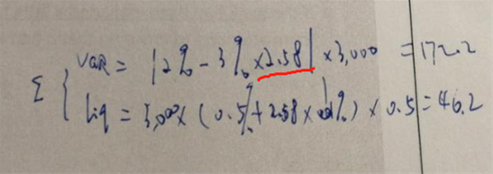同学你好,这里计算VAR的时候,用的是99%的置信水平,对应的分位点应该是2.33,而题目给出的2.58,是spread的分布对应的分位点,这两个不能混用的哦