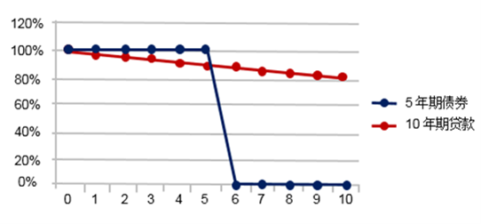 同学你好,老师的意思应该是这样的,对于贷款(Loans)来说,其实就是借款,把钱借出去的时候,敞口是上升的,但是随着时间的推移,可能会有提前偿付,所以贷款的风险敞口是随着时间的推移逐渐下降的,就像下面的红色图形那样