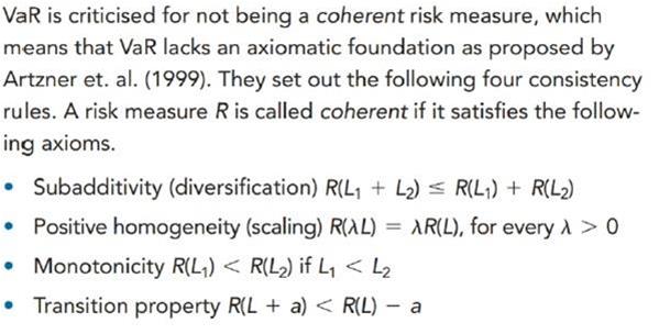 同学你好,满足一致性风险度量需要有四个条件,1.次可加性2.正齐次性3.单调性4.过渡性。定义如下: