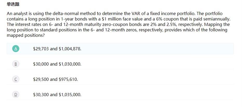 同学你好,这里不建议看2017年版本的notes,因为FRM每年都要对原版书进行更新,2021年和2017年版本已经有很大的不同,这里还是建议以2021年教材资料为准。另外,下面的这道题实际上是把一个债券映射到两个不同的零息债券,一个到期时间是6个月,另一个到期时间是1年,都在期末付息,因此最后直接除以1.025就可以了,不需要再调整为半年付息的形式。