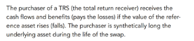 TRS 卖方=protection buyer= total return payer= credit risk+market risk 的short 方。