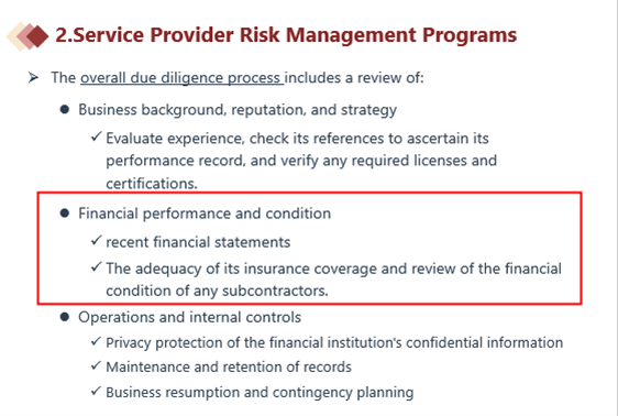 同学你好,这里涉及的是外包风险管理中的知识点,具体知识点见附图。