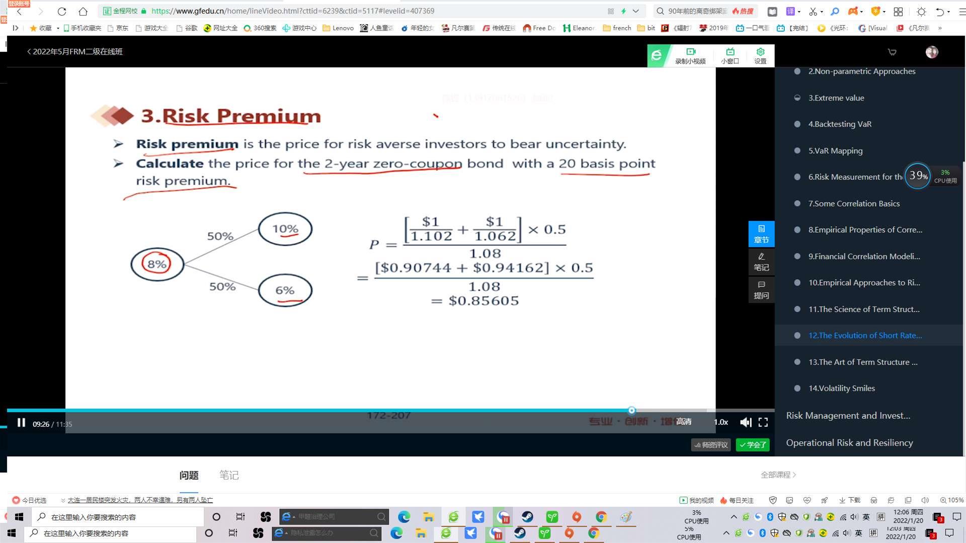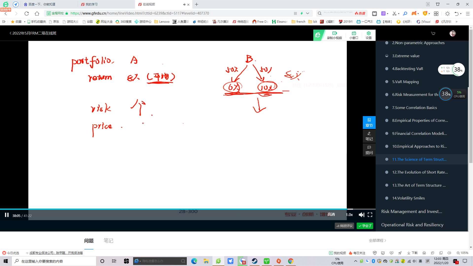市场风险这边 第11个视屏,37.48分钟,将到了一个组合回报率为8% ,一个组合回报率为6%与10%, 这个时候解说是8%的不确定性大,所以风险大,所以价格小 但是,在第11个视频9.28分钟,有一个Risk premium,而这个risk preimium 却说要给到6%10%那第二段,说第二段多承担的不确定,可是这样好像有点矛盾了, 因为应该8%不确定更高,Risk premium不是应该给8%那段吗?