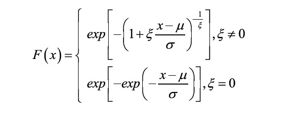 同学你好,不是的,广义极值理论建模的是样本数据中极值的分布。假设现在从一个随机总体中抽取了样本量为n 的样本数据,把样本当中的极值定义为Mn,如果要对抽取出的极值去建模的话,用的就是广义极值理论。当抽取的样本量非常大的时候,市场上出现的极端大的损失值服从分布如下图所示。当其中的参数ξ> 0 时,是Fréchet 分布,对应金融学里的肥尾分布,类似于t 分布或者帕累托分布。这类分布是金融学用到的最多的一类极值分布。当ξ = 0 时,是Gumbel 分布,尾部是指数分布的尾部,比如正态和对数正态分布。当ξ < 0 时,是Weibull 分布,是一个薄尾分布。