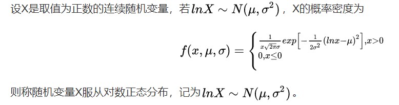 对数正态分布(logarithmic normal distribution)是指一个随机变量的对数服从正态分布,则该随机变量服从对数正态分布。比如如果随机变量X 的自然对数ln(X)服从正态分布,则X 服从对数正态分布。公式如下图图2所示。