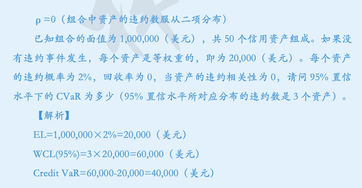 同学你好,FRM只要求default correlation=0和1的两种情况,即要么看作是相互独立的资产,要么看作是同一个资产。其他违约相关系数分析起来很复杂,不在考试范围内。附图是想种情况的做法,可以参考一下。