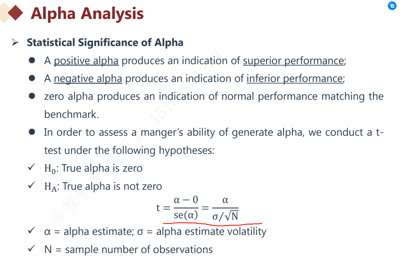 我们在对样本alpha进行t检验的时候,t=(α-0)/(σ/根号n)。
