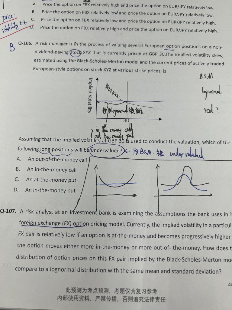 题目中说用BS M model,请教用BSM估价的图形是loognormal的一条直线吗?还是用BSM估价出来的是有偏的smirk?