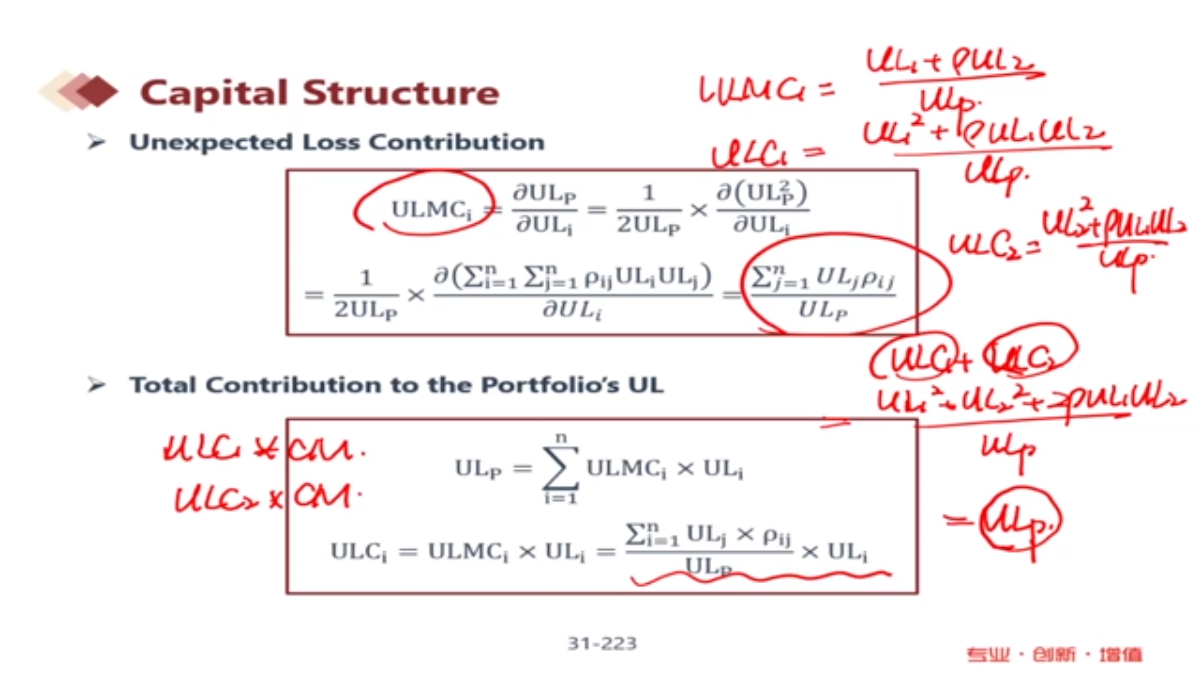 信用风险这里的公式到底是算什么呢? 在我看来计算的边际贡献ulmc是可以用来算组合资产ulp。然后ulp乘cm又可以得到EC。但是我有个问题哈。这里计算边际贡献ulmc的分母不就是ulp吗?为什么我知道ulp了,还要通过计算ulmc再推出ulp这个值?这里分母的ulp与计算经济资本EC里的ulp是同一个概念吗?