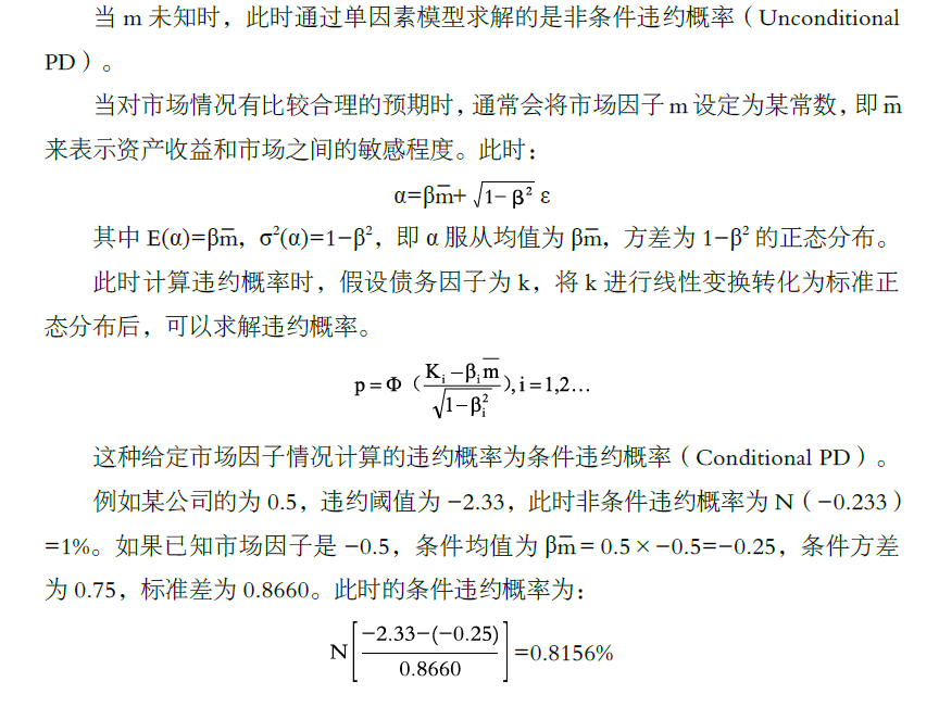 这个题不懂怎么计算?还区分条件非条件吗?另外单因素模型中,违约率的计算公式是什么呢?