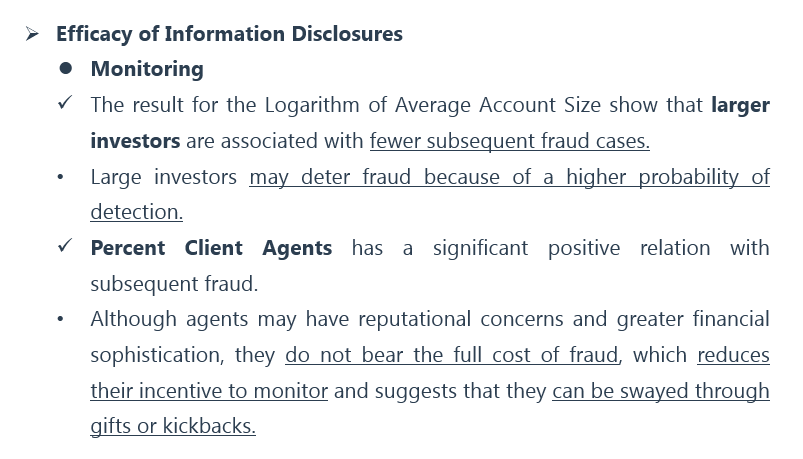 B这家公司有许多大投资者。较大的投资者与较少的后续欺诈案件相关。大投资者可能会阻止欺诈行为,因为他们被发现的可能性更高。