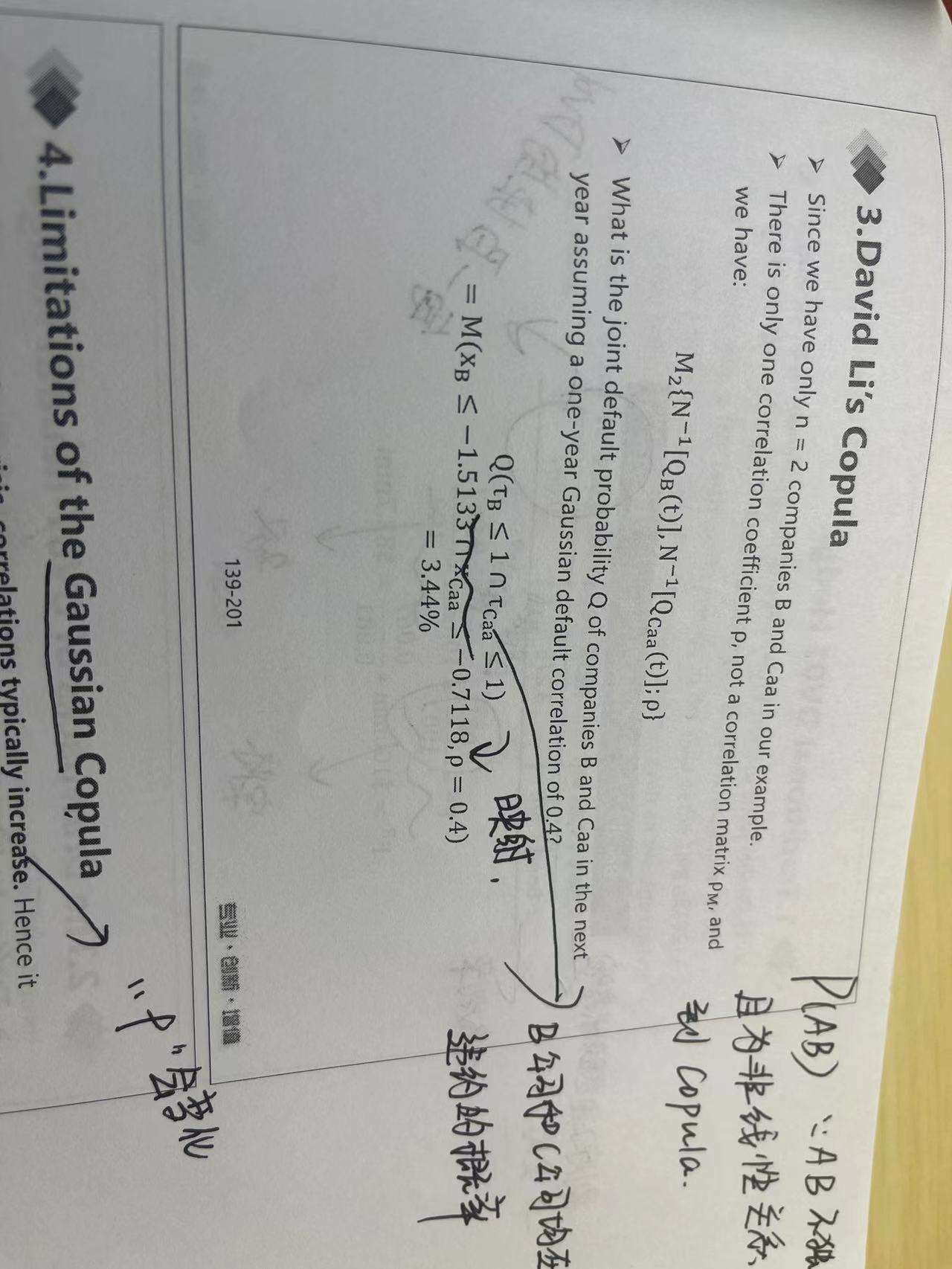 老师请问这节课是在求一个相关系数,可后面也没在讲怎么算它,是在135页里的公式求的么?139页去计算联合违约那个0.4是算出来的么?包括138页里面的图,相关系数又体现在哪里呀?