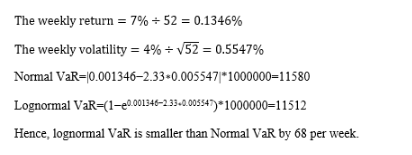 我这边看不到这题的解析,均值换算为0.0014,标准差为0.0563,算出来normalVaR=0.1299,lognormalVaR=0.1218,与答案不符,请老师帮忙看看哪里出错?