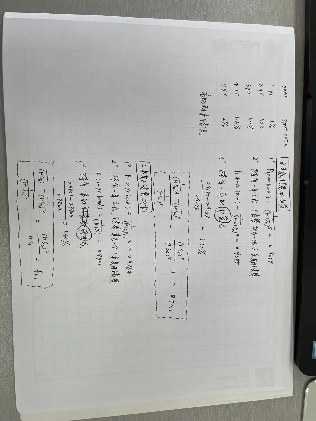 既然这种操作策略的核心假设是利率期限结构保持不变,所以在经过一年之后,其实五年期债券赚的是第四年开始持有一年的远期利率,而二年期债券支付的是第一年开始持有一年的远期利率。