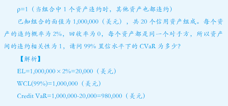 WCL是尾部损失的最大值,就看尾部会发生几个违约,由于你这里条件不足,就给你举个例子,FRM考试我们一般考损失相关性ρ=0或者1的情况,假设尾部3.5%面积下会发生3个违约,每个损失1 million,相关性为1,那么WCL=3million