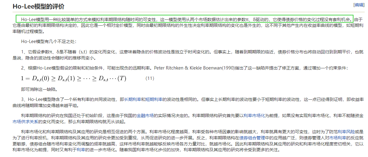 同学,你好,模型1 和2 被叫做均衡模型,因为没有采取措施来严格匹配最初的期限结构,而后面介绍的模型2 的扩展也就是Ho-Lee 模型,属于无套利模型。仅增加在模型1 上增加一个固定的趋势项得到模型2 既不会影响波动率期限结构的形状也不会影响模型的平行移动的特征,增加一个随时间变动的趋势项也不会改变这些特征。但是有着均值回归的模型就不是平行移动的模型。Ho-lee model 是包含市场溢价的模型,模型2是Ho-lee model的特殊形式,Ho-lee model的无套利是模型的一个假设。