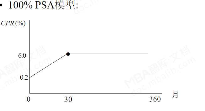 100%PSA 表示CPR 在期初是0,每个月上升0.2%,上升30 个月后达到6%。