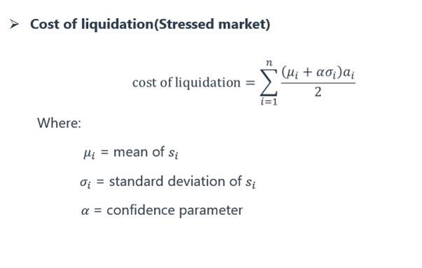 同学你好,这里就是直接套用cost of liquidation的公式计算得到的。除以2是因为交易不是以中间市场价格进行的,买方和卖方各承担成本的一半。