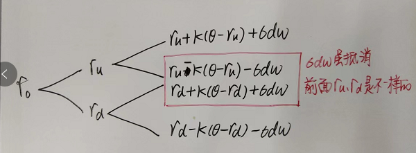 2.本题不可以使用8.3274%+K(θ-r0)来计算得出Rud?因为可以计算一下结果是不对的,通过画图也可以知道,basic point volatility抵消了,但是ru和rd是不一样的。