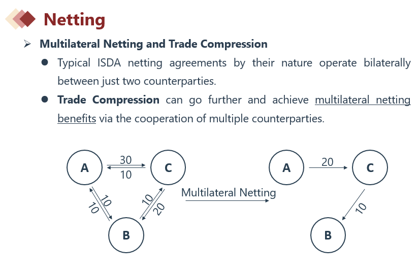同学,你好,如果是Trade Compression ,就可以进行三方结算净额;如果说non-clearable trade,就说明不能进行三方结算,分辨就看题目要求。