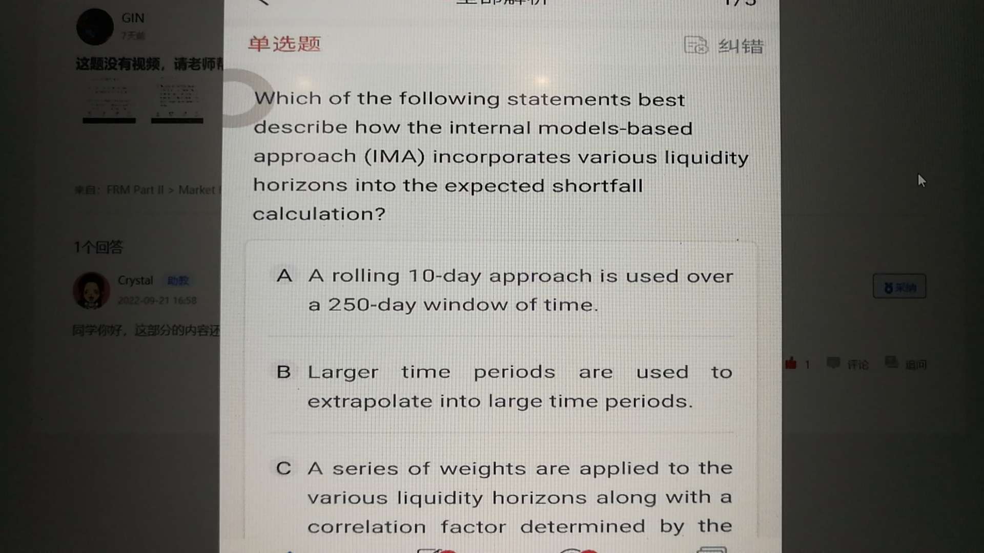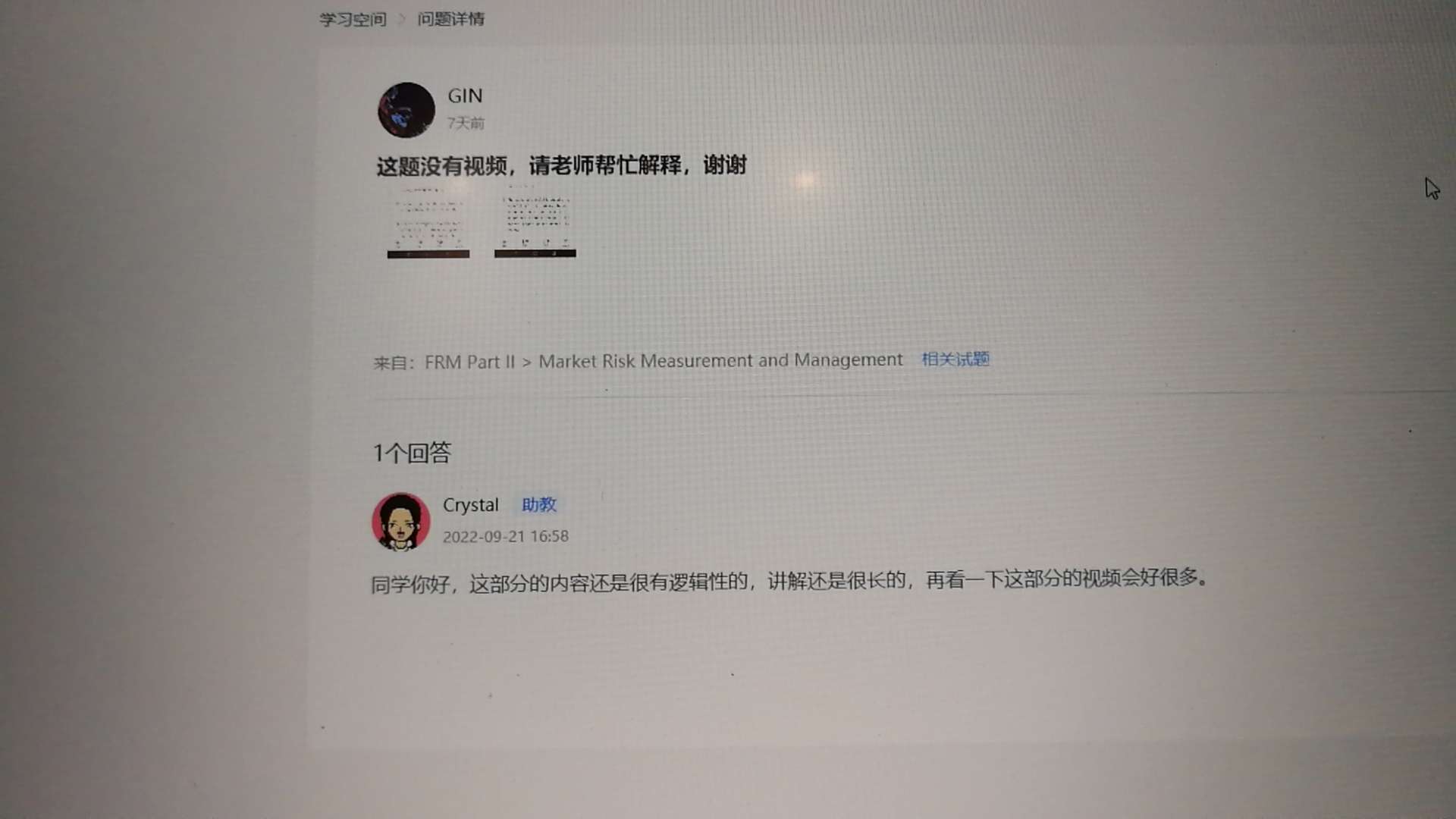 请问老师,为什么我看的基础段risk mgment for tradibg book关于IMA法计算ES的内容从1:21:13开始,就说了句“现在说为时过早”就带过了,没有展开。还有哪里关于这部分内容的吗?