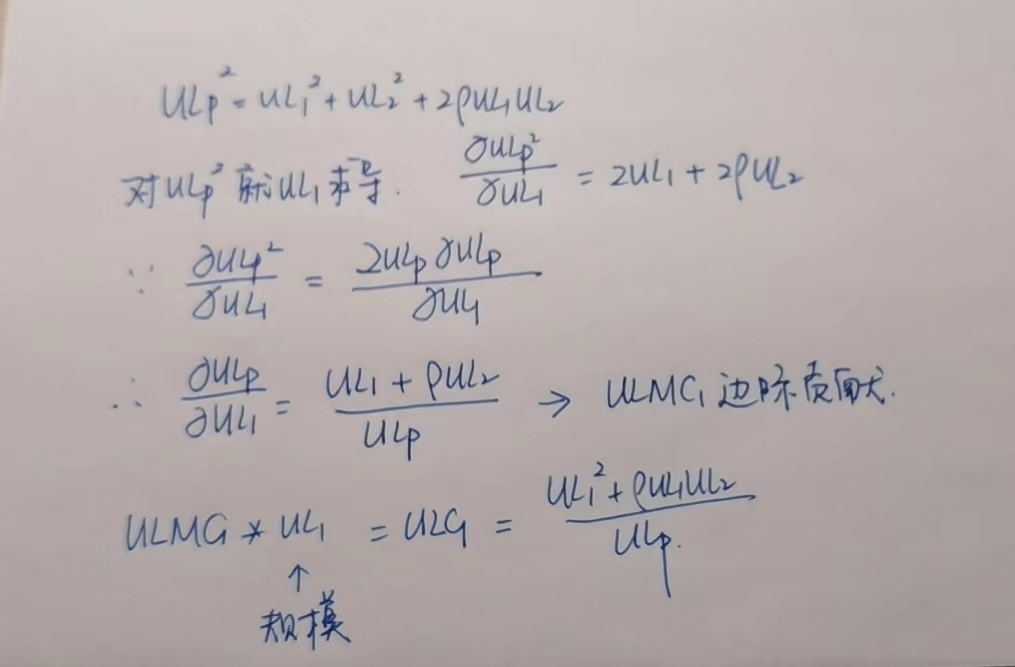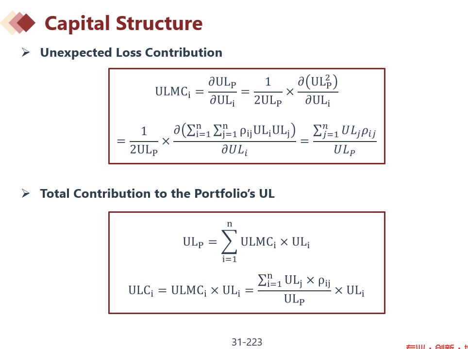 这个ULC指的是组合中各成分对于总的UL的贡献,我们在信用风险的经济资本计量部分讲过对应的计算,详见附图。题中用到的公式是对于两个资产构成的组合的ULC的计算,具体推导详见附图。