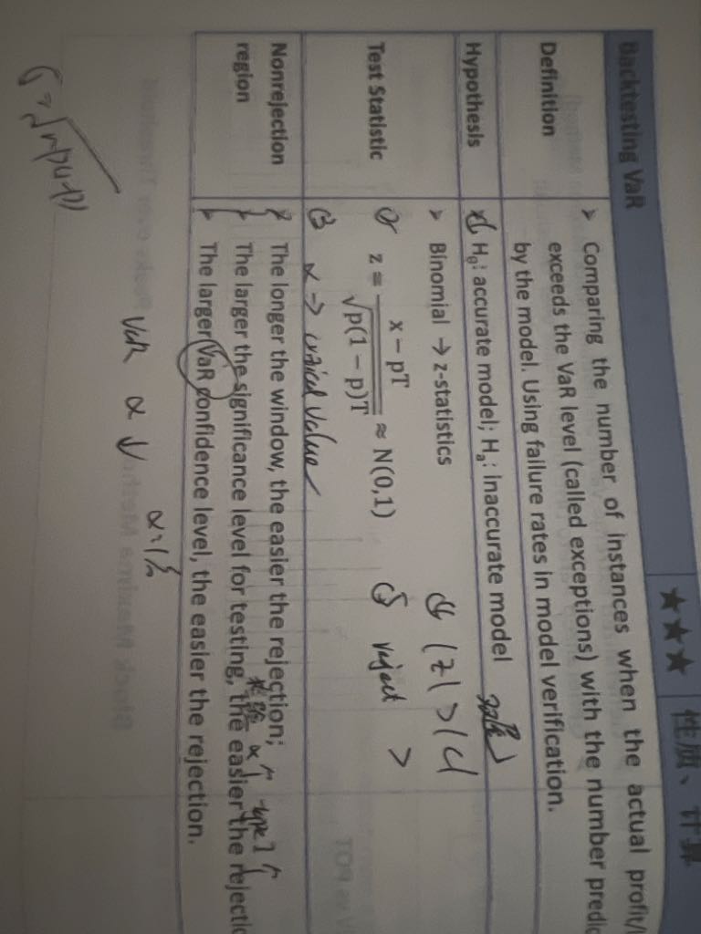 百题34题 B选项 我记得在基础段 框架串讲时 老师讲过VaR的置信水平越高 更容易拒绝?那能不能 说更容易犯一类错误?